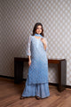 Introducing Classikari Georgette Miror ombrae set with a long kurta with chikankari hand embroidery with a relaxed fit plazzo and dupatta.